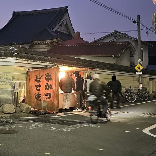 暮れなずむ町。 そこにポツンと明かりをつけ、串カツを売る1つの模擬店。切り盛りするのは80代の姉妹。お客さんはその店頭で立ち食い・立ち飲みをする。 もう50年以上、この光景が続いているという。 いいじゃないか、それ。僕もその脈々と続く歴史のひとこ…