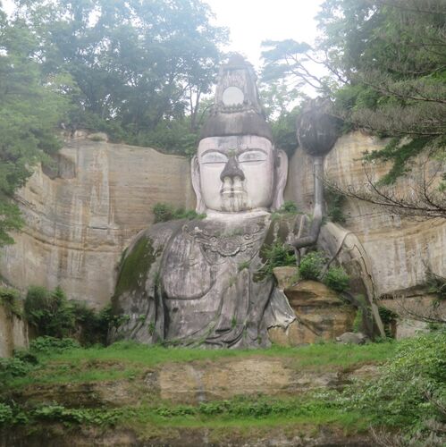 相馬市には、「百尺観音」という山肌に彫られた観音像がある。いや、正確に言うと彫ってる途中の観音像がある。 どのくらい前から彫っているのかというと、約90年前に1人の男性が彫り始め、その後に子から孫…というように4代に渡って彫り続けているという壮…