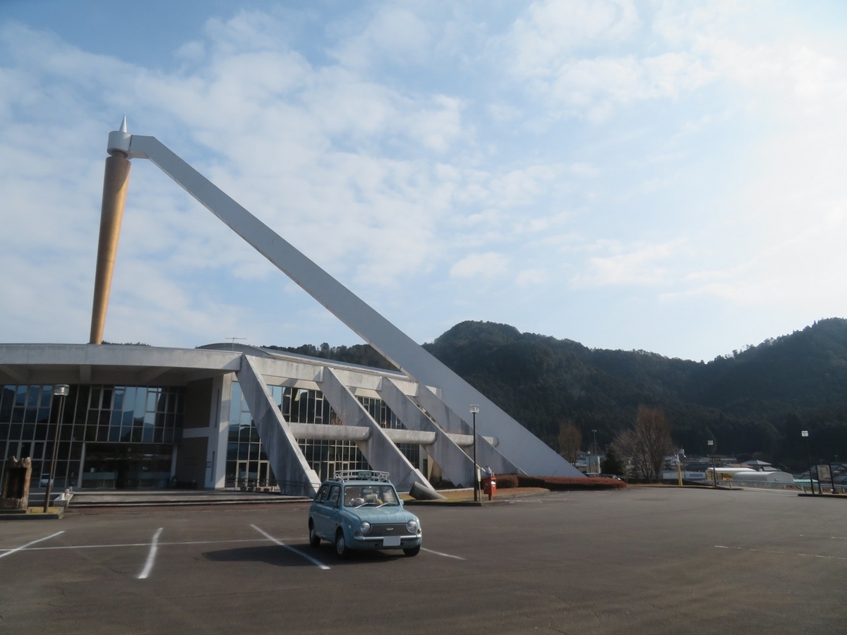 僕の愛車の背後の建物が、日本まん真ん中センターだ。