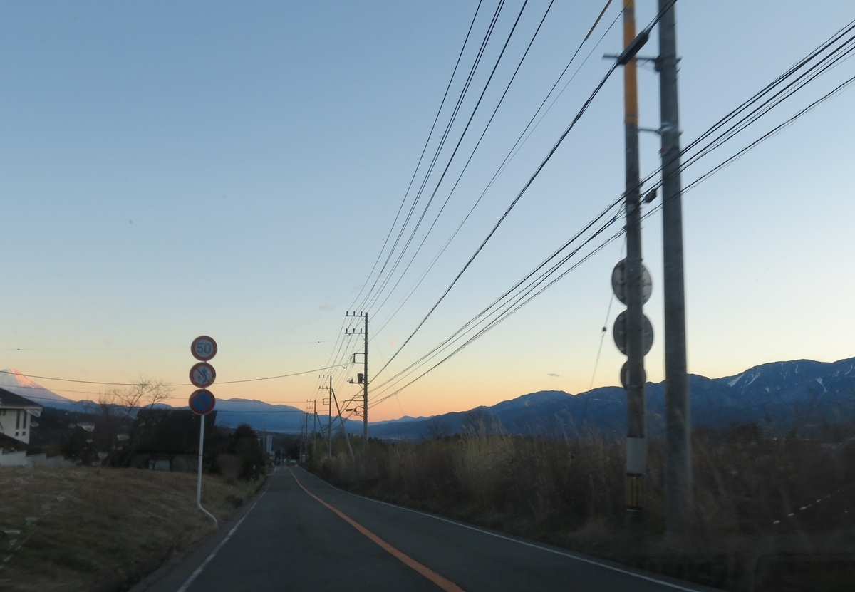 西日に照らされた富士山が見えた。