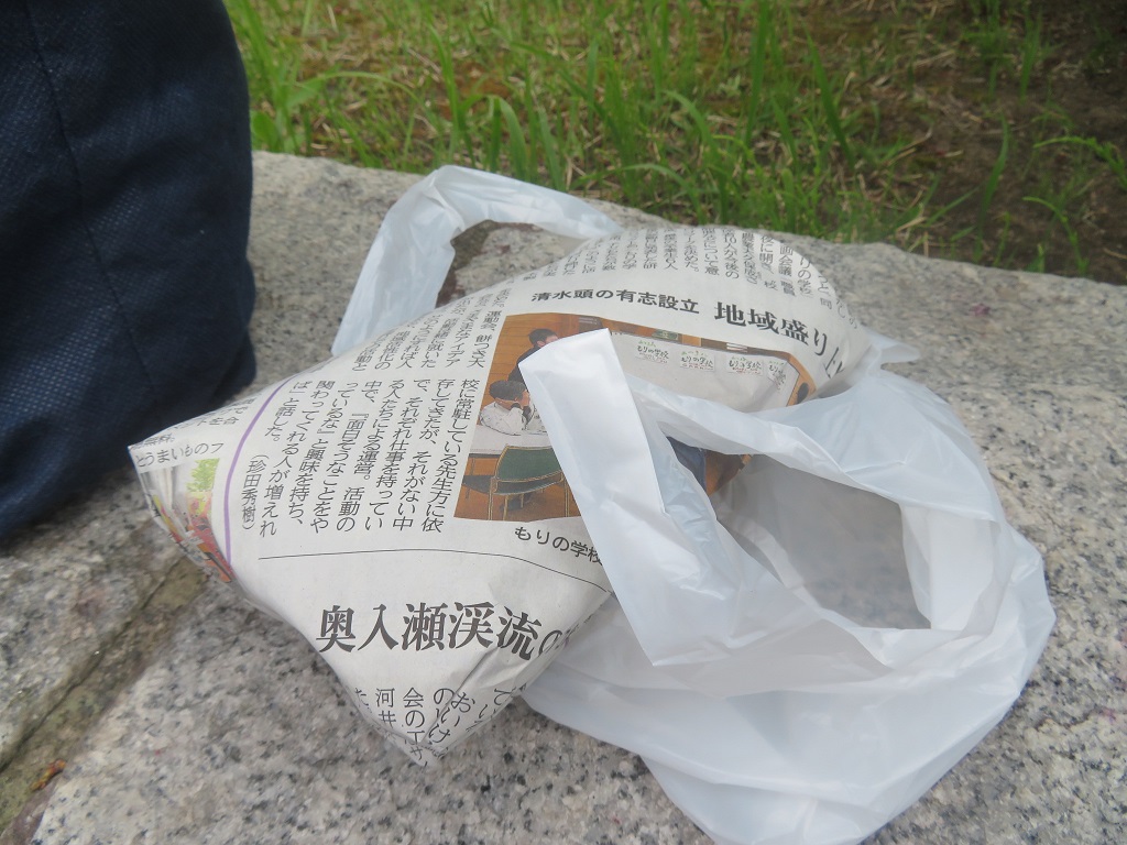 石段に腰かけて新聞紙に包まれたパックを取り出した。